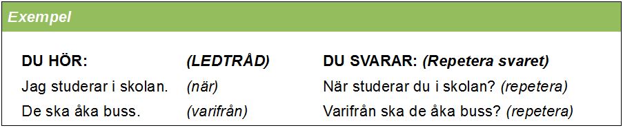 Svara med en fråga Dialog 6Lyssna Dialog 6.1Instudering Dialog 6.2Övning för flyt Övning 6.1Ordföljd (frågor) Övning 6.2Ordföljd (frågor) Övning 6.3Ordföljd (frågor) Övning 6.4Plural Övning 6.5Plural Övning 6.6Plural Övning 6.7Plural Övning 6.8Plural Övning 6.9Plural Övning 6.10Verb (dåtid) Övning 6.11Verb (dåtid) Övning 6.12Verb (dåtid) Övning 6.13Verb (dåtid) Övning 6.14Verb (dåtid) Övning 6.15Verb (dåtid) Övning 6.16Verb (framtid) Övning 6.17Verb (framtid) Övning 6.18Verb Övning 6.19Tidsuttryck Övning 6.20Byt ut rätt ord
